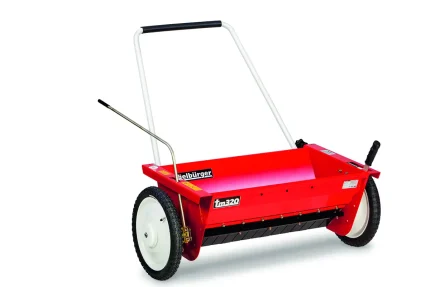 Dieses Produkt wurde entwickelt, um Dünger, Kies und Sand auf großen Flächen effektiv zu verteilen, und bietet eine Kapazität von 30 Litern. Dank einer rotierenden Scheibe kann der Dünger auf einer Fläche von 2,5 bis 3 m verteilt werden. Er ist leicht vom Fahrersitz aus zu entleeren und kann mit allen Frontmähern und Rasentraktoren verwendet werden.