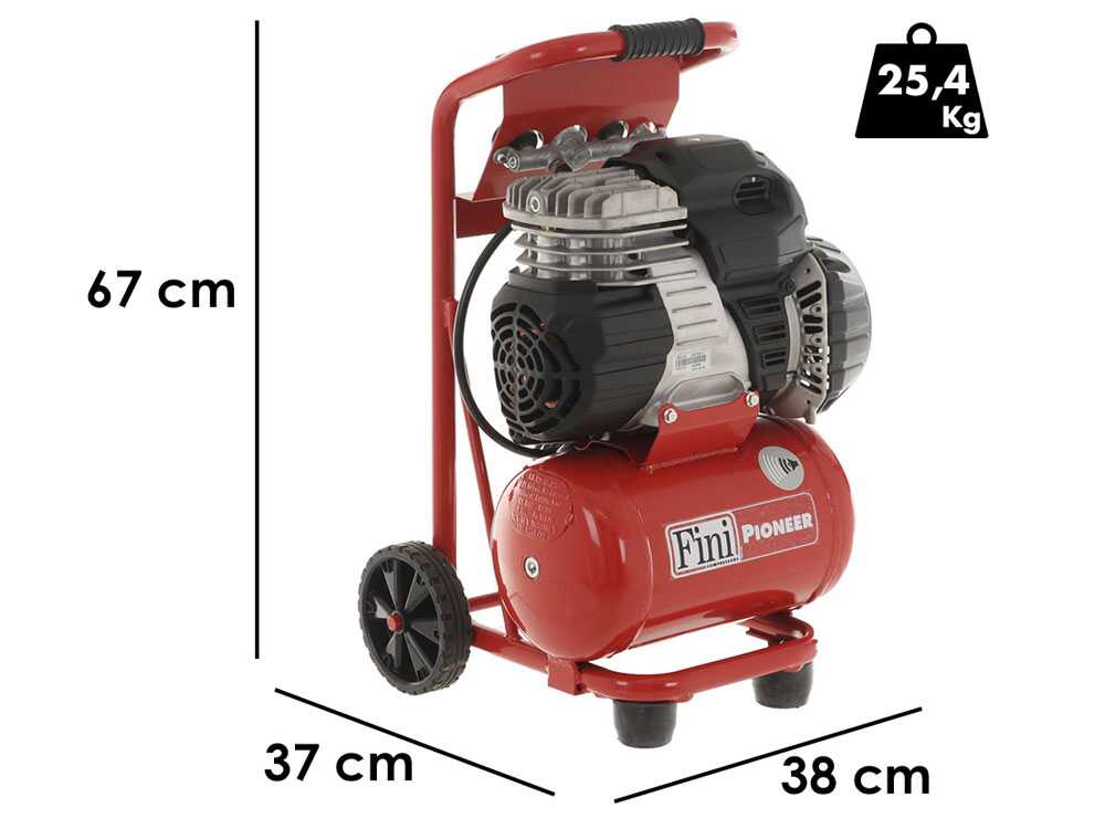 Der Schalldruckpegel (LPA) beträgt 75 dB und der Schallleistungspegel (LWA) 95 dB, was im Vergleich zu anderen ähnlichen Modellen einen relativ leisen Betrieb anzeigt. Das Kompressordesign umfasst zwei robuste und zwei schwenkbare Räder mit Bremse, die die Bewegung und Stabilität während des Gebrauchs erleichtern. Der integrierte Handgriff und der Schukostecker erhöhen die Benutzerfreundlichkeit.