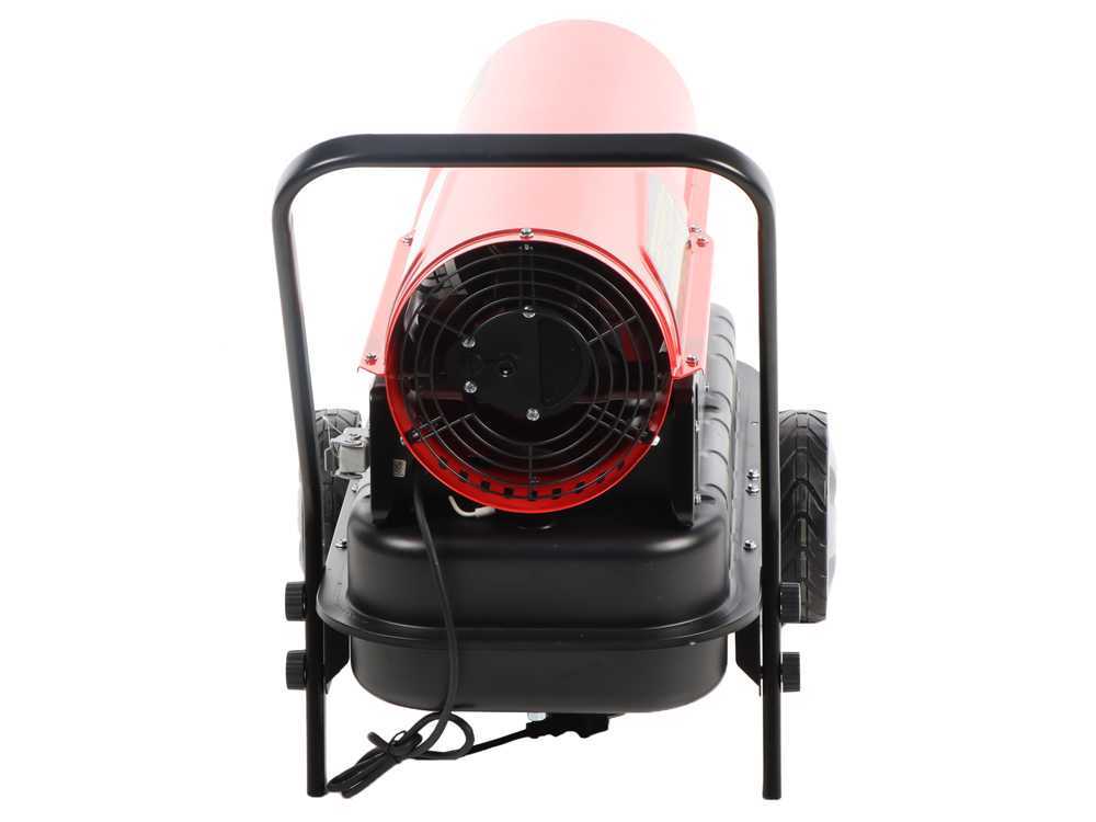 Das Heizgerät GeoTech DH 3000 ist ein Produkt mit Direktheizung, das mit Diesel oder Kerosin betrieben wird und mit einem Transportwagen ausgestattet ist.