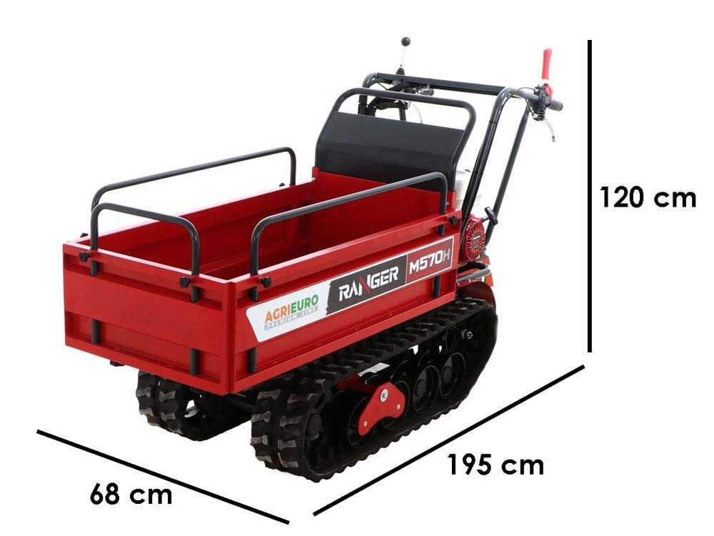 Dank des Raupenantriebs und des Loncin-Motors hat dieser Transporter auch bei Steigung eine Ladekapazität von 500 Kg. Das ist ein unerlässliches Gerät für Transporte aller Art.