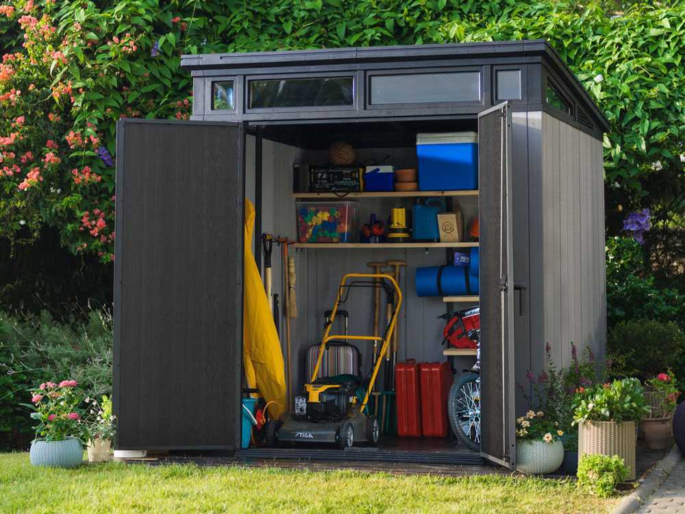 Das wartungsfreie Artisan-Gerätehaus hilft Ihnen, Ihren Garten mühelos ordentlich zu halten und verleiht ihm gleichzeitig einen stilvollen Akzent, ohne viel Platz zu beanspruchen.