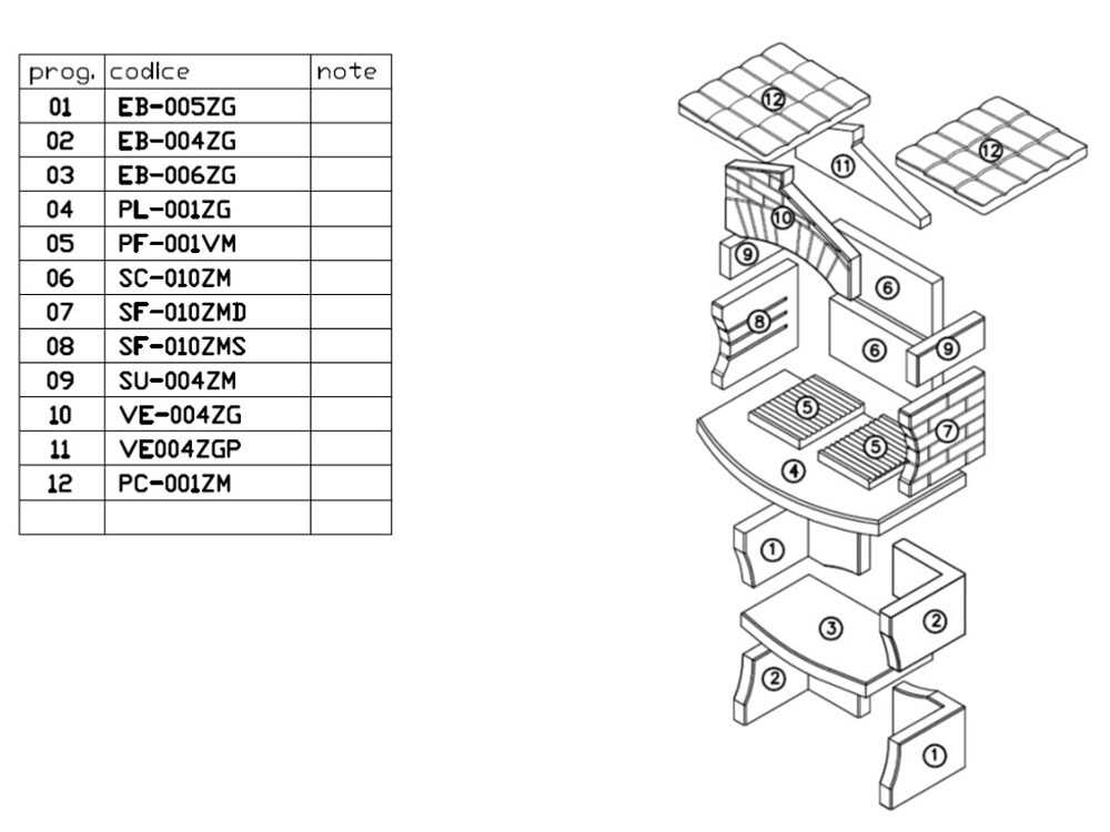 Das Produkt wird zerlegt geliefert und erfordert Mörtel/Kleber für die Montage. Die Produkte können als Zubehör erworben werden.