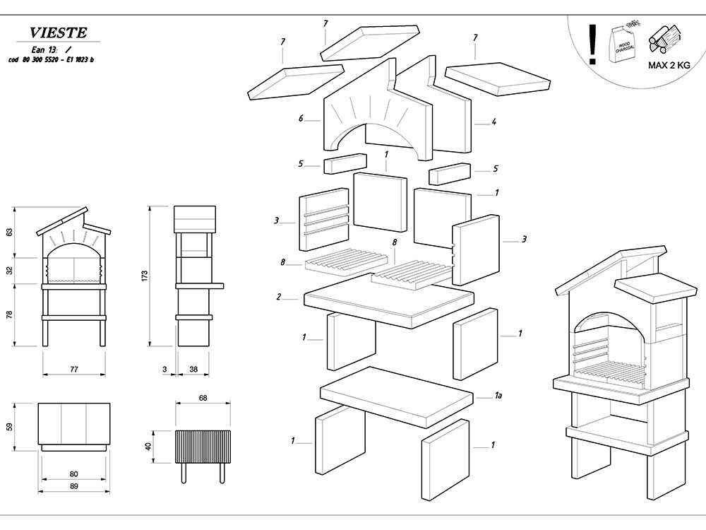 Der Grill wird zerlegt geliefert und benötigt Mörtel/Kleber für den Zusammenbau (nicht im Lieferumfang enthalten).