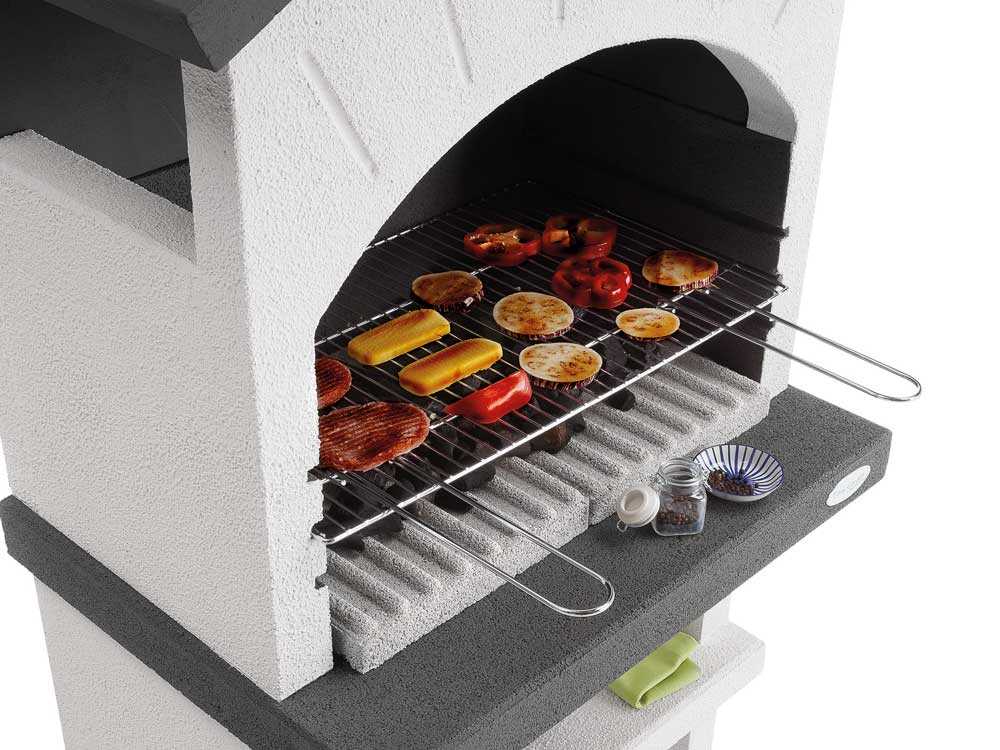 Der Grillkamin Palazzetti Vieste ist mit einem Grillrost 68×40 cm ausgestattet, der die Zubereitung von Speisen für 10-12 Personen gleichzeitig möglich macht. Der Grillrost kann je nach Wunsch auf 3 Grillrosthöhen eingestellt werden. Das Gestell besteht aus Marmotech, einer feuerfesten Betonmischung mit hellgrauem Anstrich.