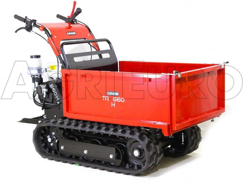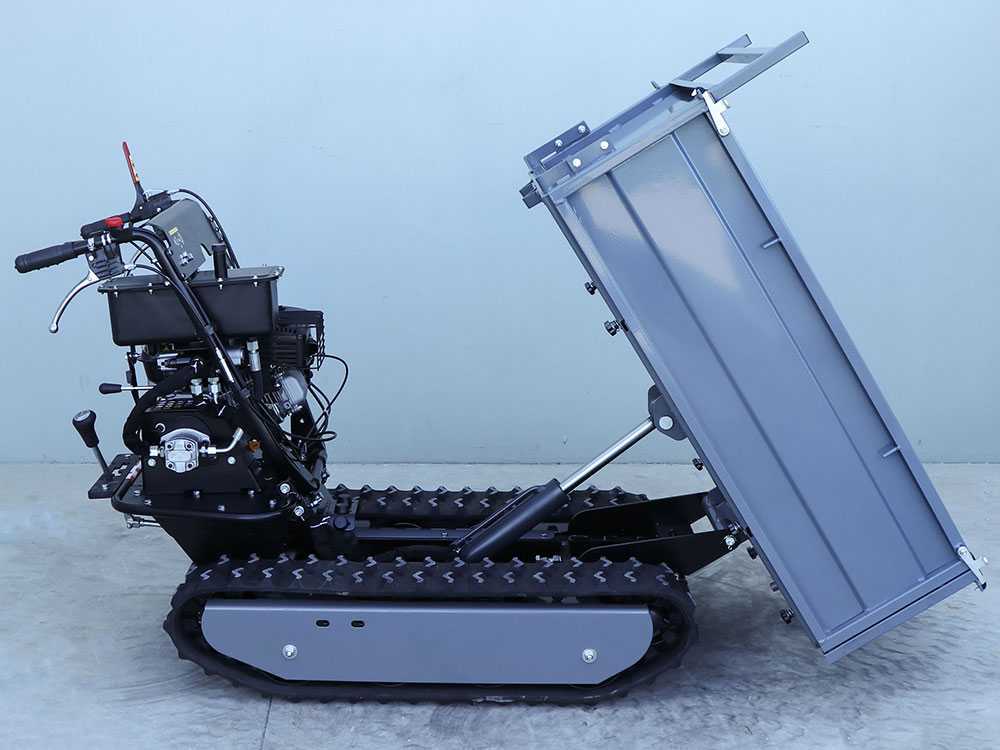 Eine weitere besondere Eigenschaften dieser Schubkarre sind die Raupen, die eine sehr hohe Sicherheit und Stabilität während der Benutzung der Maschine selbst mit schweren Lasten sowie bei Steigungen garantieren, wie es bei anderen Motorschubkarren nicht gewährleistet ist.
