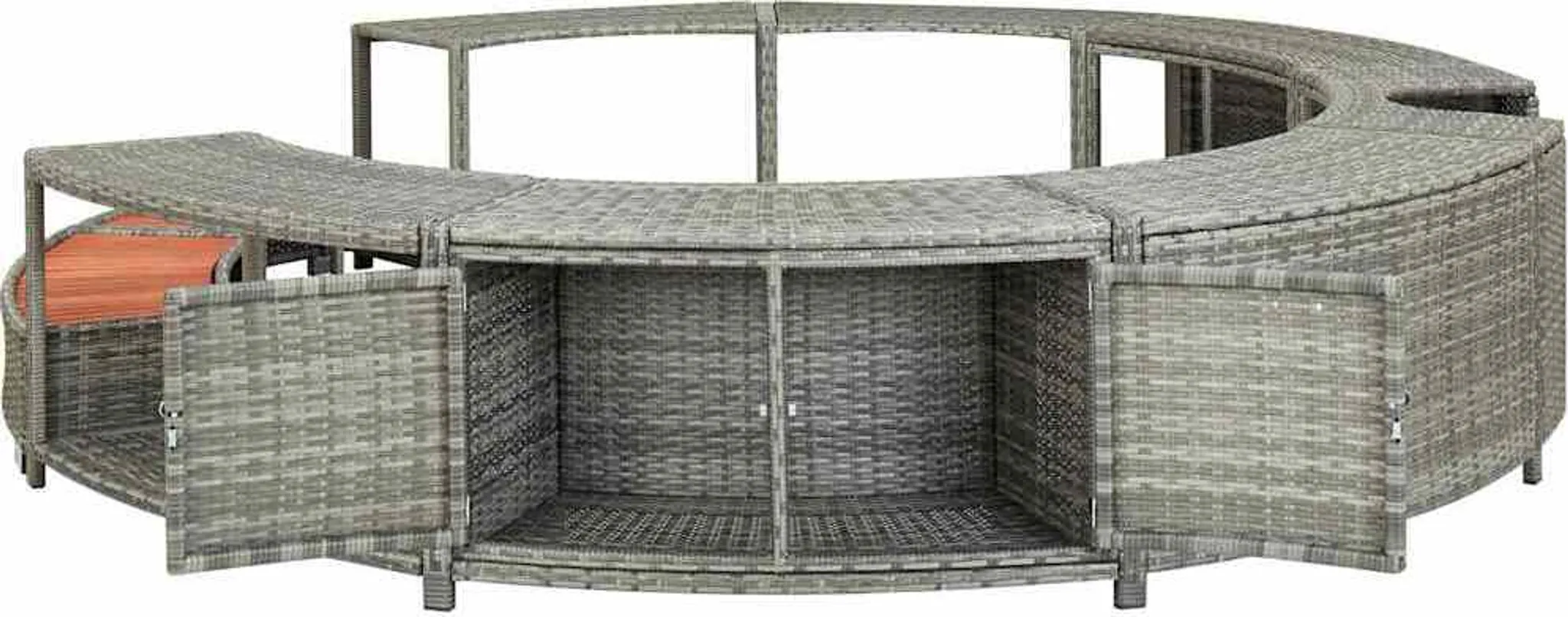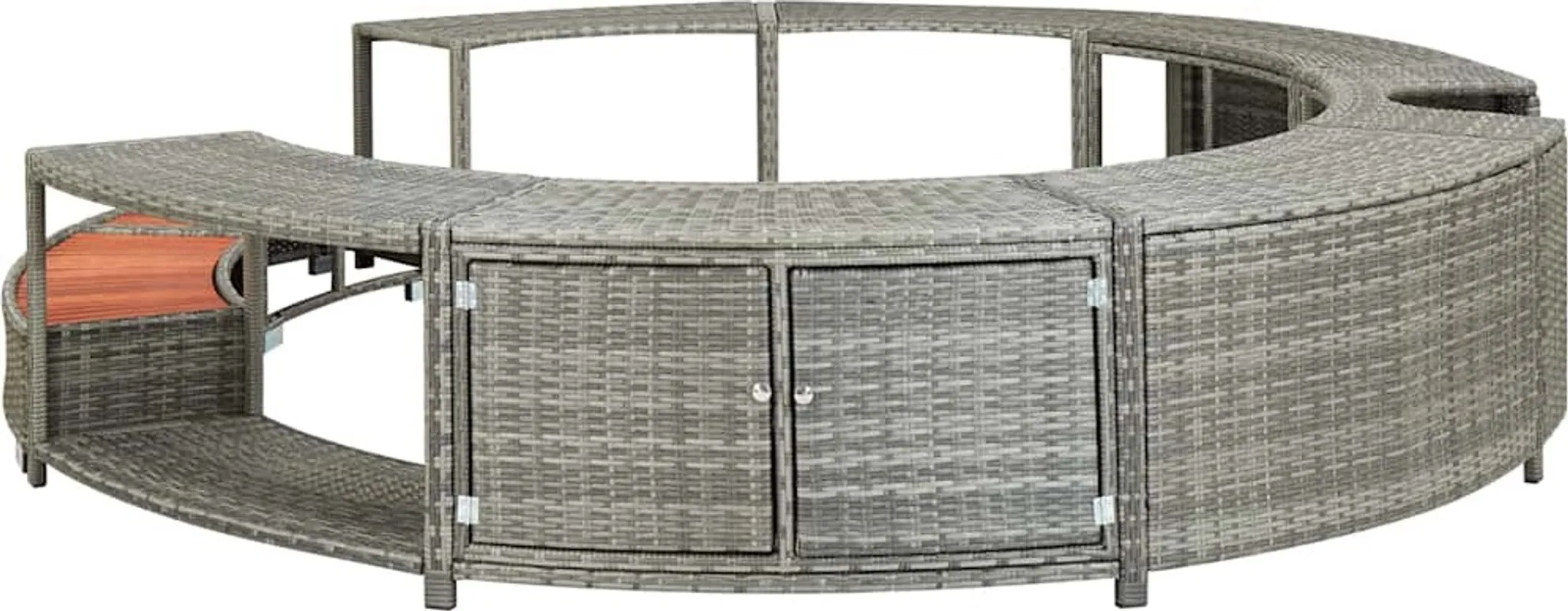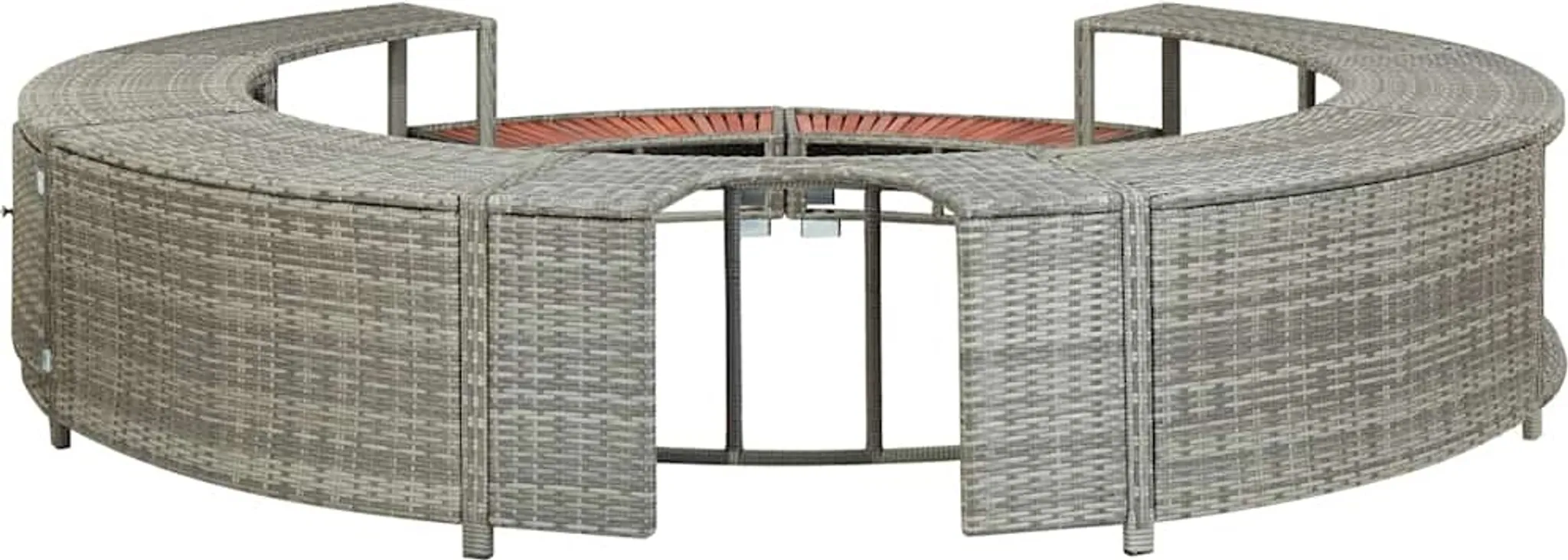 Diese elegante Whirlpool-Einfassung aus Poly-Rattan ist ein vielseitiges Zubehör für Ihren Whirlpool. Sie verleiht dem Pool ein schickes und modernes Aussehen und schafft gleichzeitig einen funktionalen und benutzerfreundlichen Whirlpoolbereich.