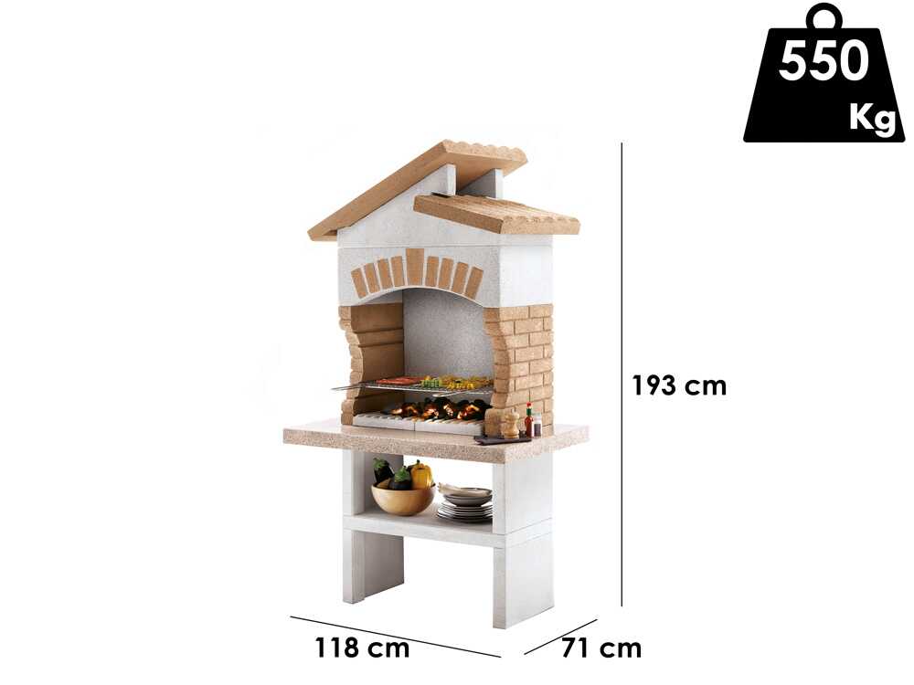 Das kompakte Design integriert sich leicht auf Balkonen, Terrassen oder in kleinen Gärten, während die zwei seitlichen Ablagen eine praktische Unterstützung für Teller, Gewürze und Utensilien während des Grillens bieten.