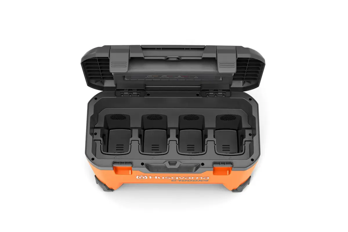 Husqvarna Akku Ladekoffer C1000X4 zum Laden, wo immer Sie wollen – in der Werkstatt, auf der Baustelle, im Auto oder im Anhänger. Das 40-C1000X4 ermöglicht das gleichzeitige Hochleistungsladen von bis zu vier Husqvarna BLi-X 36V-Akkus in einem Gerät, und dank der intelligenten Lastverteilung werden alle Akkus schnell und effizient geladen. Erfüllt die IPX4-Klassifizierung für Wasserbeständigkeit für den Einsatz unter allen Wetterbedingungen. Ladegerät, Transportbox und Aufbewahrung – die Akku Ladekoffer bieten ein All-in-One-Setup für eine zeitsparende Handhabung der Batterien. Die Akkus sind nicht im Lieferumfang enthalten.