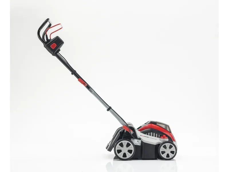 Angetrieben wird der Akku-Vertikutierer von unserem 40 V-Li-Ion Akku aus der Al-Ko Energy Flex Familie, den es wahlweise in 4 Ah- und 5 Ah-Ausführung gibt (separat erhältlich). Mit einer Arbeitsbreite von 36 cm und seiner 2-Achsführung, die für eine hohe Fahrstabilität sorgt, gewährleistet die kompakte Bauweise des Vertikutierers ein angenehmes Arbeiten. Zentral kann die Tiefeneinstellung der Vertikutierwalze in 5 Schritten vorgenommen werden. Die Vertikutierwalze ist mit 12 robusten Stahlmessern bestückt, was dem Akku-Vertikutierer eine lange Lebensdauer ermöglicht.
