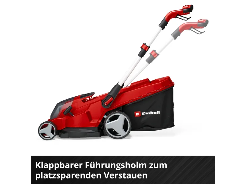 Der Rasarro 36/42 ist mit einem höhenverstellbaren, teleskopierbaren und klappbaren Führungsholm ausgestattet, sodass er perfekt an jede Körpergröße angepasst und platzsparend verstaut werden kann. Als Highwheeler verfügt der Akku-Mäher über erhöhte Hinterräder, die das Arbeiten in schwierigem Gelände erleichtern. Seine großflächigen Räder schonen zudem den Rasen. Ein praktischer Tragegriff sorgt für den einfachen Transport.