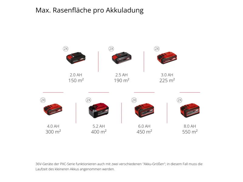 Benötigte Akkus für Betrieb 2 x 18 V Akkus